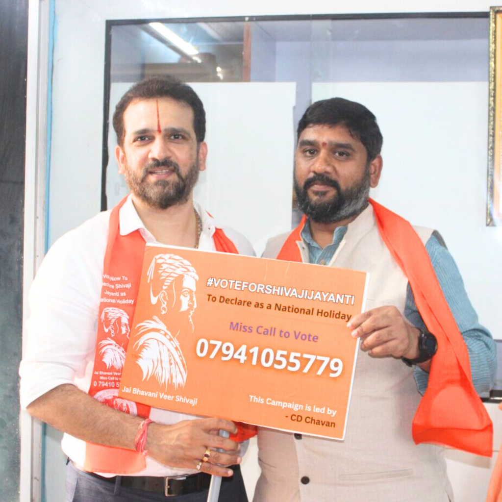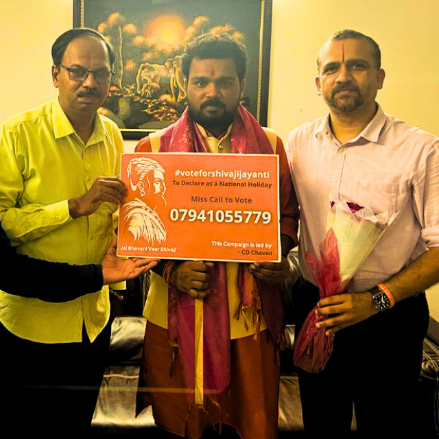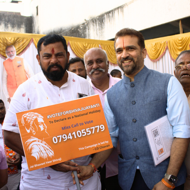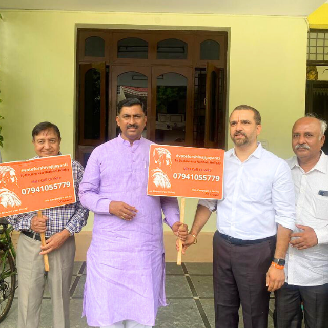 Campaign to declare Shivaji Jayanti as a National Holiday & Hindavi Swarajya Abhiyan Divas. - Collected public support through innovative awareness drives like “Selfie with Ganesh”.